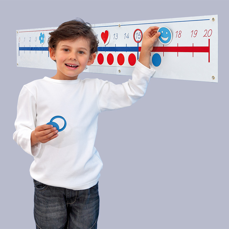 Magnetická číselná os 0–20 je pevná nástenná pomôcka, ktorá sa montuje priamo na stenu pomocou dodaných skrutiek a hmoždiniek. Po inštalácii umožňuje žiakom vizuálne sledovať a riešiť matematické úlohy – sčítanie, odčítanie, tvorbu desiatok alebo dopĺňanie chýbajúcich čísel. Na os sa používa magnetické príslušenstvo – krúžky, pásy a symboly, ktoré zvyšujú názornosť a interaktivitu vyučovania.