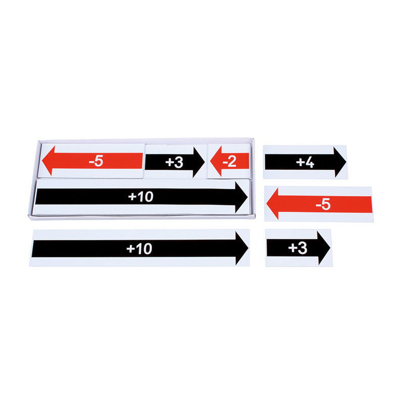 Obojstranné magnetické šípky s číslami – čierne pre sčítanie, červené pre odčítanie.