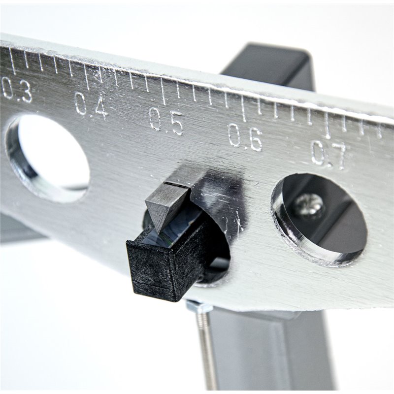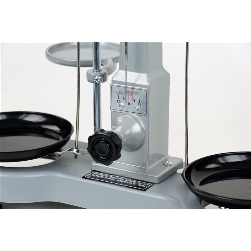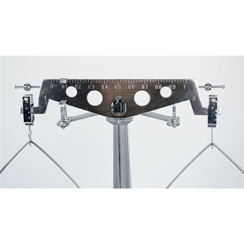 Nosník váhy so skrutkami na nastavenie nuly, dlhý kovový ukazovateľ so stupnicou, otočná podporná doska na meranie vztlaku, otočný gombík na aretáciu;