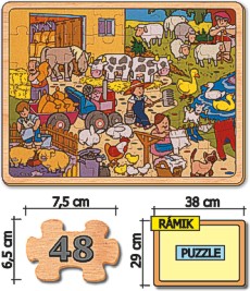 O tom, že deti radi skladajú puzzle niet pochýb. V našej ponuke týchto pestrých, poučných a tvorivých hier je možnosť výberu od najjednoduchších 8-kusových až po zložité 48 a 50-kusové puzzle. Sú doporučované deťom od 3 rokov. Rozvíjajú ich postreh, analyticko-syntetické myslenie, manuálnu obratnosť a vizuálne vnímanie. Jednotlivé témy na obrázkoch sú deťom veľmi blízke obohacujú ich detskú fantáziu a v širokej miere aj ich rečové schopnosti.Obsah dodávky: Puzzle - 48 častí, vyseknuté z 3mm preglejky. Drevený podkladový obrázok s rámikom pre jednoduchšie skladanie. Rozmer obrázku s rámikom je 38x29 cm. Hra je vákuovo zabalená