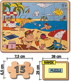 O tom, že deti radi skladajú puzzle niet pochýb. V našej ponuke týchto pestrých, poučných a tvorivých hier je možnosť výberu od najjednoduchších 8-kusových až po zložité 48 a 50-kusové puzzle. Sú doporučované deťom od 3 rokov. Rozvíjajú ich postreh, analyticko-syntetické myslenie, manuálnu obratnosť a vizuálne vnímanie. Jednotlivé témy na obrázkoch sú deťom veľmi blízke obohacujú ich detskú fantáziu a v širokej miere aj ich rečové schopnosti.Obsah dodávky: Puzzle - 15 častí, vyseknuté z 3mm preglejky. Drevený podkladový obrázok s rámikom pre jednoduchšie skladanie. Rozmer obrázku s rámikom je 38x29 cm. Hra je vákuovo zabalená.
