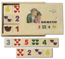 Číselné domino je jednoduchá hra pre deti predškolského veku. Pomáha hravým spôsobom precvičovať a upevňovať získané vedomosti o číslach. Podporuje rozvoj myslenia, reči a priestorovej orientácie.Materiál :drevené dominá sú vyrobené zo 6mm preglejky s plnofarebnou potlačou Obsah dodávky :28ks drevených ilustrovaných obrázkov s rozmerom 9 x 4,5 cm dodávané v drevenej krabici s rozmerom 19 x 14 x 5cm