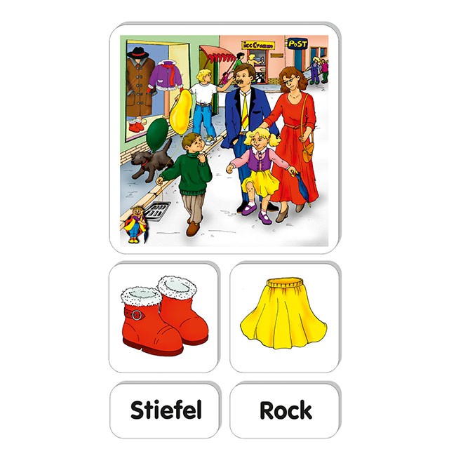 Súbor obrázkov a textových kartičiek umožňuje nácvik,precvičovanie a upevňovanie slovnej zásoby,tvorenie viet a dialógov k téme Oblečenie - NJ.