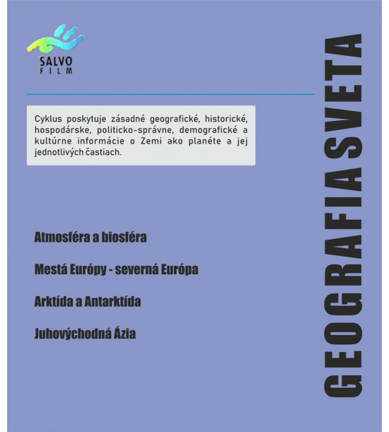 Atmosféra a biosféra 20 min. Mestá Európy - severná Európa 19 min. Arktída a Antarktída 18 min. Juhovýchodná Ázia 21 min.