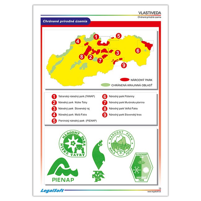 Vizuálne veľmi príťažlivo spracovaný súbor kartónových obrazov s témami:miestna krajina,štátne symboly,pamiatky UNESCO,mapa a jej využitie,prírodné podmienky Slovenska - vodstvo,rastlinstvo,živočíšstvo,výškové pásma,význam Váhu.