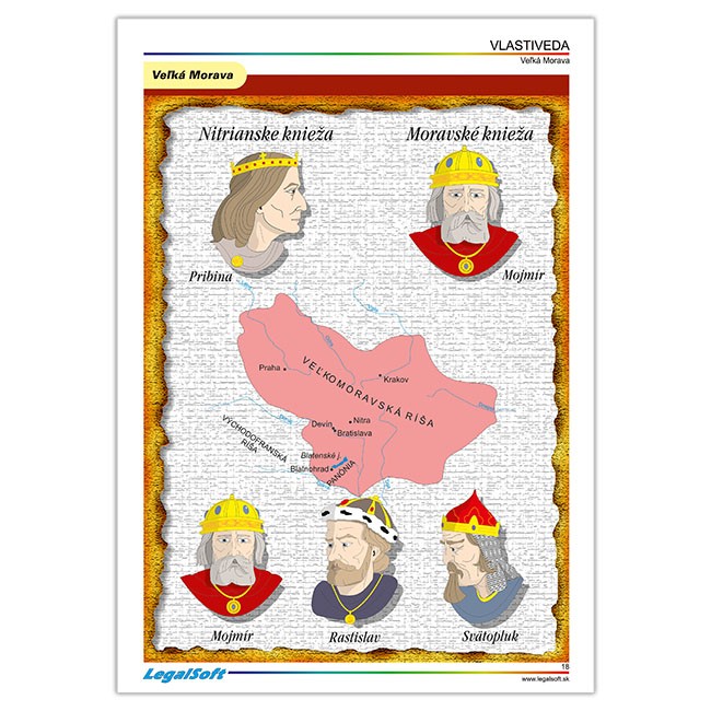 Vizuálne veľmi príťažlivo spracovaný súbor transparentných fólií s témami:miestna krajina,štátne symboly,pamiatky UNESCO,mapa a jej využitie,prírodné podmienky Slovenska - vodstvo,rastlinstvo,živočíšstvo,výškové pásma,význam Váhu