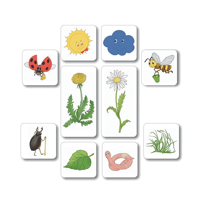 Súbor magnetických obrázkov umožňuje hravým spôsobom opisovať,určovať a znázorňovať polohu predmetov.