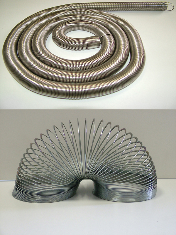 Dlhá vynutá pružina na vyučovanie longitudinálnych a transverzálnych vĺn,rozmery: 22 mm, dĺžka 3 m, napínateľená do dĺžky 9 m,Vynutá pružina ocelová, priemer: 80cm.