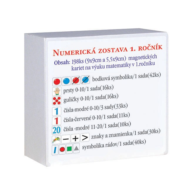 Učebná pomôcka na vyvodzovanie, každodenné precvičovanie a utvrdzovanie základného učiva matematiky v 1. ročníku. Je to názorná pomôcka na vyvodzovanie základného učiva: