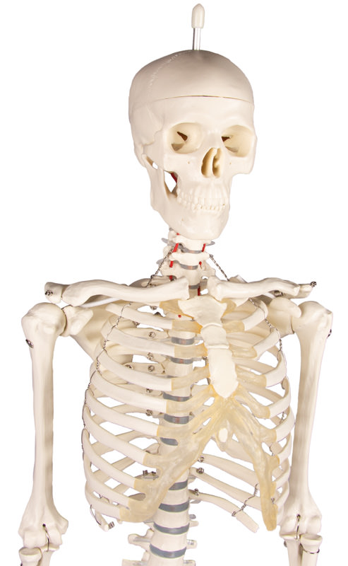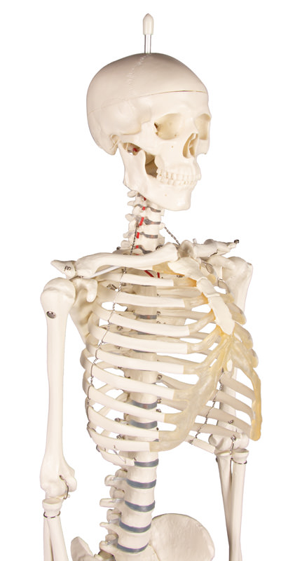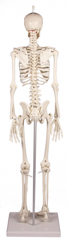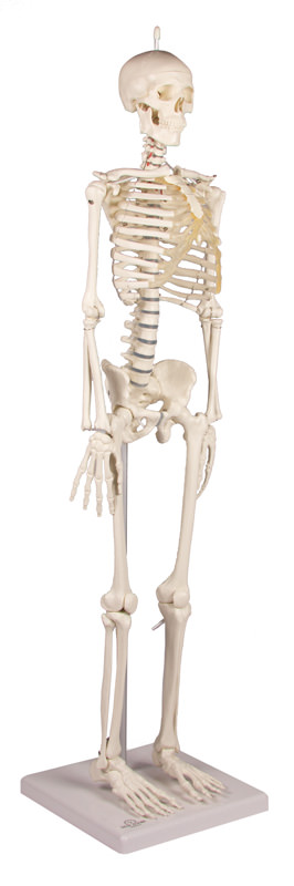 Tento mini model kostry človeka je vyrobený v polovičnej veľkosti, než je veľkosť skutočnej ľudské kostry,je teda ideálnou pomôckou pre lekárov a študentov.Kostru si môžu umiestniť na stôl a študovať všetky anatomické detaily, ktoré kostra znázorňuje.Model je vyrobený vo vysokej kvalite a je umiestnený na podstavci.Na celom modely môžeme študovať lebku,ktorá sa skladá z troch častí (spodina lebečná,dolná čeľusť a báza lebečná).Na kostre sú pohyblivé končatiny,ktoré môžu demonštrovať pohyb rúk aj nôh.Horné i dolné končatiny môžu byť demontované.Súčasťou modelu sú tiež pohyblivé kĺby,ktorých plôšky umožňujú kĺzavý pohyb znázorňujúci reálny pohyb v kĺbe.