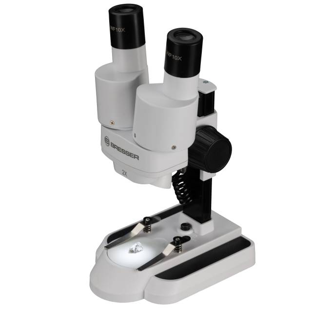 Stereoskopický mikroskop Bresser Biolux ICD 20x s 20x zväčšením je kvalitný mikroskop pre deti aj dospelých na skúmanie povrchových štruktúr minerálnych kameňov, mincí, štúdium hmyzu, rytín a známok v odrazenom svetle a priestorovo (3D).