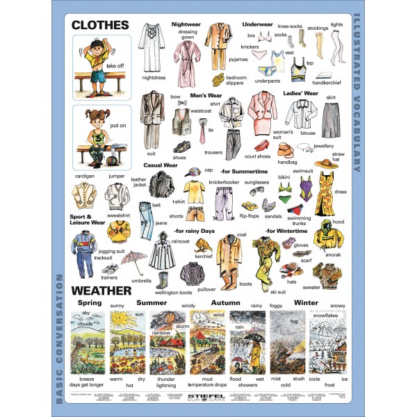 Súbor náučných tabúľ Konverzácia je určený predovšetkým pre začiatočníkov na zvládnutie hodín angličtiny hravým spôsobom, ale i na zopakovanie učiva a jeho precvičovanie. Dopĺňa a ilustruje výklad učiteľa, pričom uľahčuje zvládnutie učiva. Konverzačné náučné tabule majú zábavnou formou rozvíjať rečové zručnosti, zvyšovať úroveň vyjadrovania, podporovať aktivitu, predstavivosť a tvorivý prístup žiakov. Podstatnú zložku obsahu náučnej tabule Oblečenie a počasie tvoria pútavé a zároveň zábavné ilustrácie, ktoré rozširujú slovnú zásobu približne o 100 nových slovíčok.