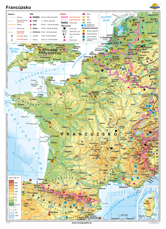 Francúzsko všeobecnogeografická mapa 160x120cm