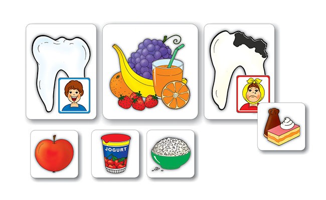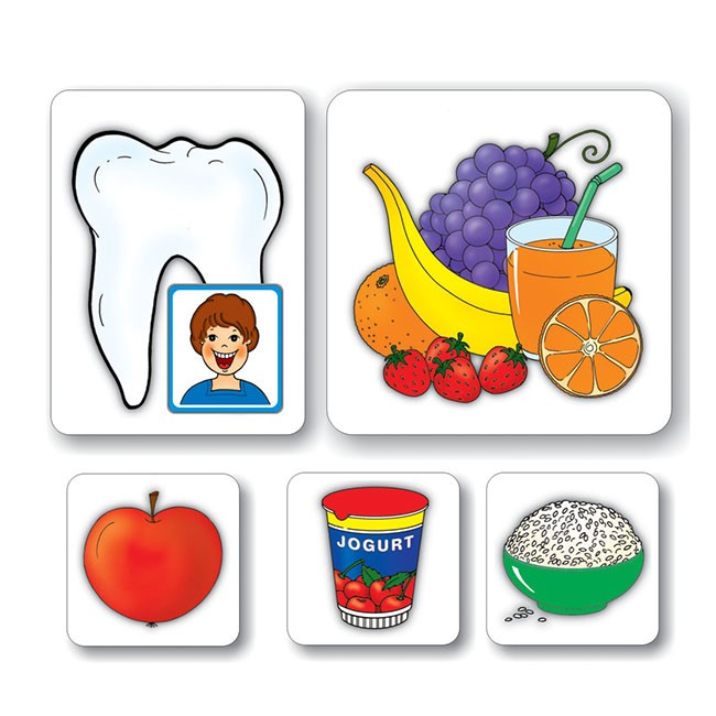 Utvárať pozitívny vzťah k jedlu, rozlišovať a pomenovávať jednotlivé druhy potravín, vedieť triediť potraviny, ktorých jedenie je zdravé a tých, ktoré zdraviu škodia, poznať nevhodné potraviny a nápoje, zdôrazňovať význam hygieny pri jedle - tieto a ďalšie témy môžete rozvíjať so súborom farebných obrázkov ZDRAVÁ VÝŽIVA. Obrázky ďalej umožňujú zoradenie potravín podľa výživovej a vitamínovej hodnoty a tým vysvetliť deťom, ktoré potraviny im prinášajú úžitok. Obrázky môžete využiť aj v potravinovej pyramíde.