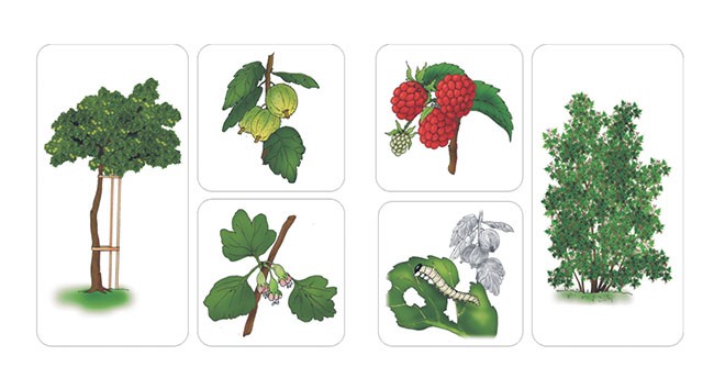 Súbor magnetických obrázkov umožňuje poznávať,porovnávať a rozlišovať jednotlivé ovocné a lesné kry,ich rozdiely v listoch,kvetoch a plodoch,poznať niektorých škodcov.Prírodné vedy.