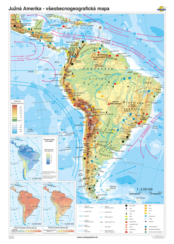 Južná Amerika - všeobecnogeografická mapa 100x140cm