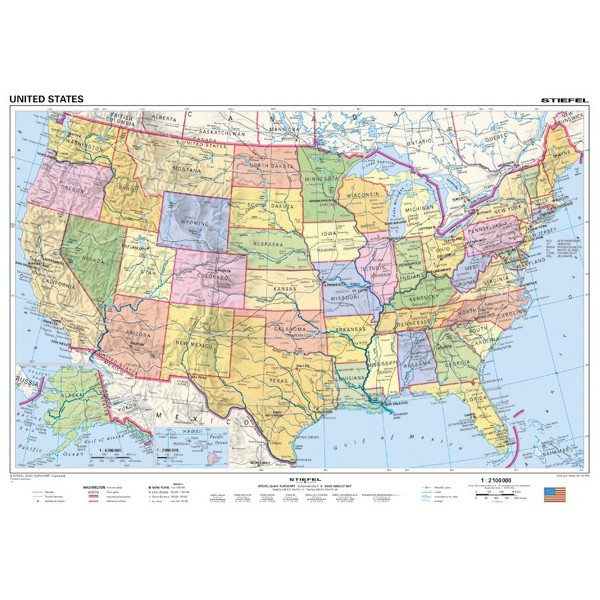 Didaktická pomôcka s popisom v angličtine je vhodná na výučbu anglického jazyka a geografie na základných a stredných školách. Detailne zachytáva pobrežie, povrch a vodstvo Spojených štátov amerických, ako aj rozdelenie na 50 štátov vrátane Havaja a Aljašky.