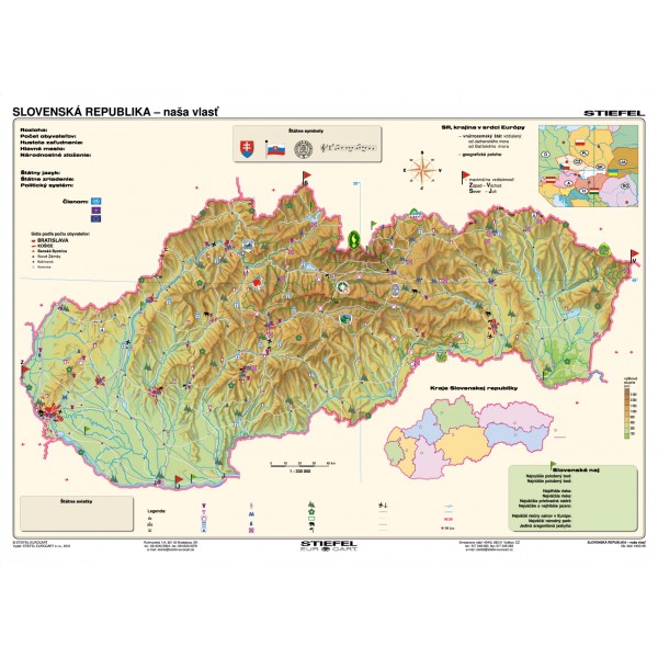 Obsah obojstrannej didaktickej pomôcky tvorí vlastivedná mapa. Na všeobecnogeografickej mape našej vlasti sú zakreslené významné hrady, zámky, pamiatky UNESCO, národné parky, archeologické náleziská, pamätné miesta, kúpele. Sú na nej vyznačené aj oblasti s hlavnými hospodárskymi aktivitami. Mapa je doplnená o dôležité všeobecné informácie o SR, akými sú poloha, rozloha, členstvo v medzinárodných organizáciách, štátne symboly, štátne sviatky, administratívne členenie, krajné body, slovenské naj atď. Didaktická pomôcka je určená predovšetkým na hodiny vlastivedy na 1. stupni ZŠ, ale dá sa využiť aj na hodinách zemepisu na 2. stupni ZŠ.