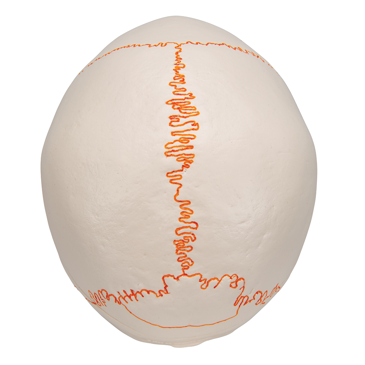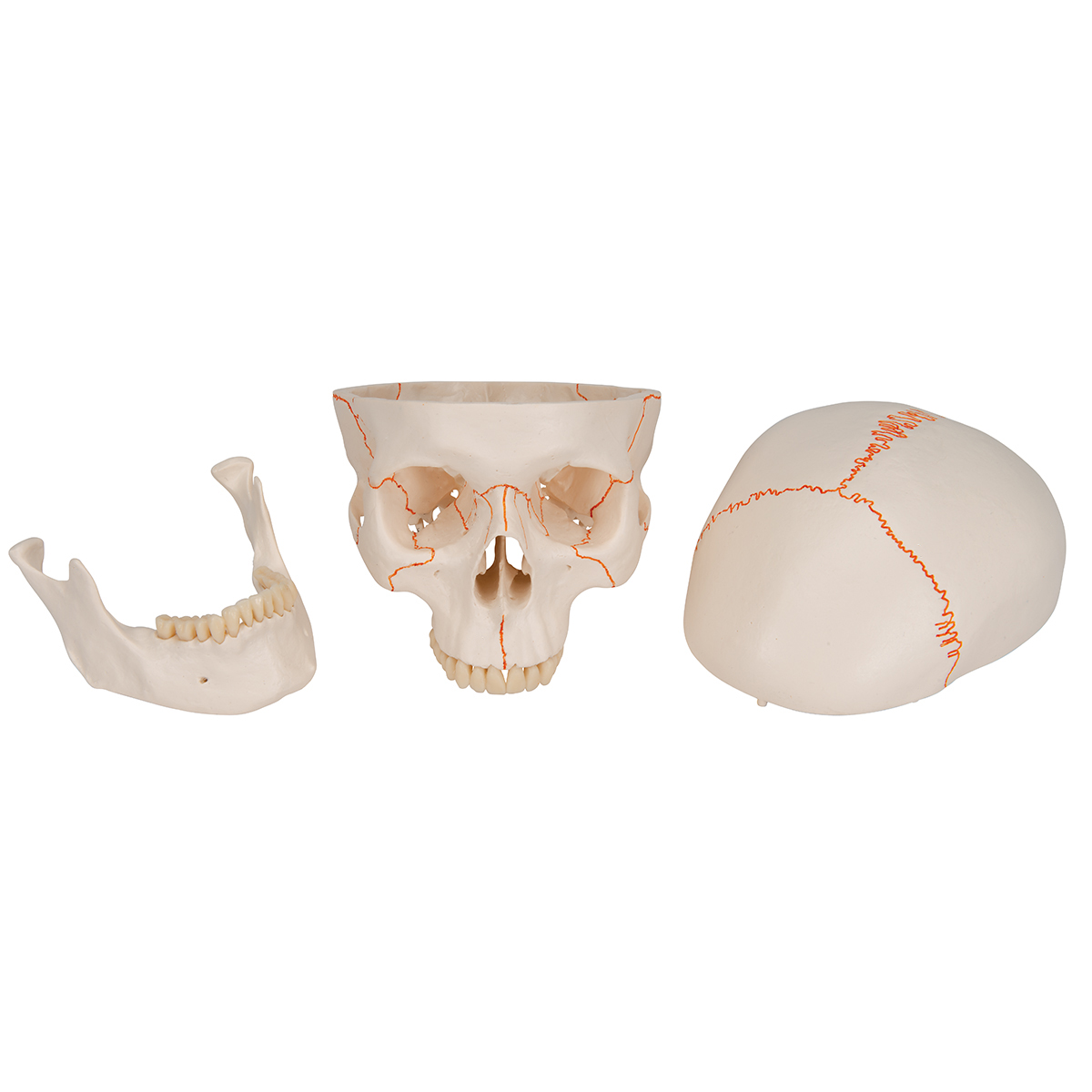 Lebka s číselnými označeniami a farebným označením jednotlivých anatomických štruktúr.Rozmer:20x13,5x15,5cm;0,7 kg.