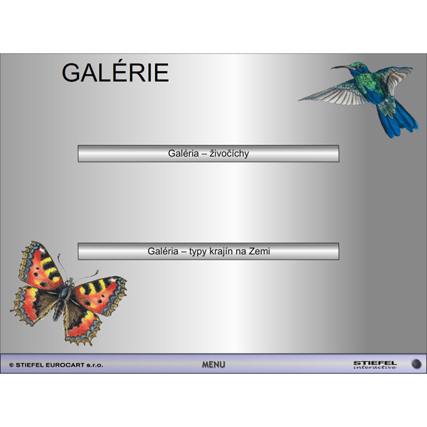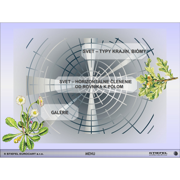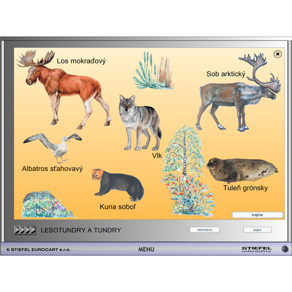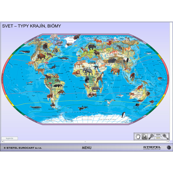 - interaktívnu mapu sveta s podnebnými pásmami, prírodnými oblasťami a živočíchmi typickými pre dané prírodné oblasti