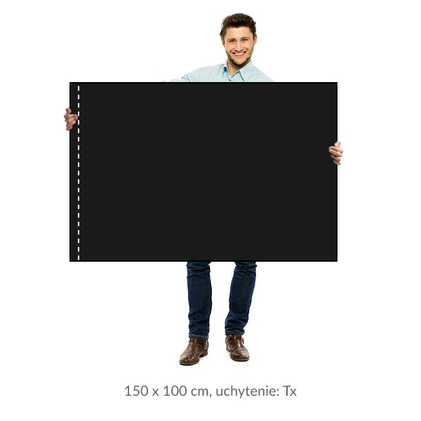 Smútočná vlajka rozmeru (šírka) 150 cm x (výška) 100 cm vyrobená z čierneho nepáravého 100% polyesterového úpletu gramáže 110 gr./m2.