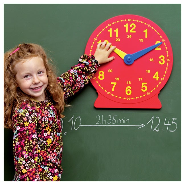 Veľké magnetické hodiny na precvičovanie práce s hodinami a určovanie času. Hodiny sú vhodnou pomôckou pri vysvetľovaní učiva, precvičovaní práce s časom a časovými úsekmi alebo riešení príkladov s časom.