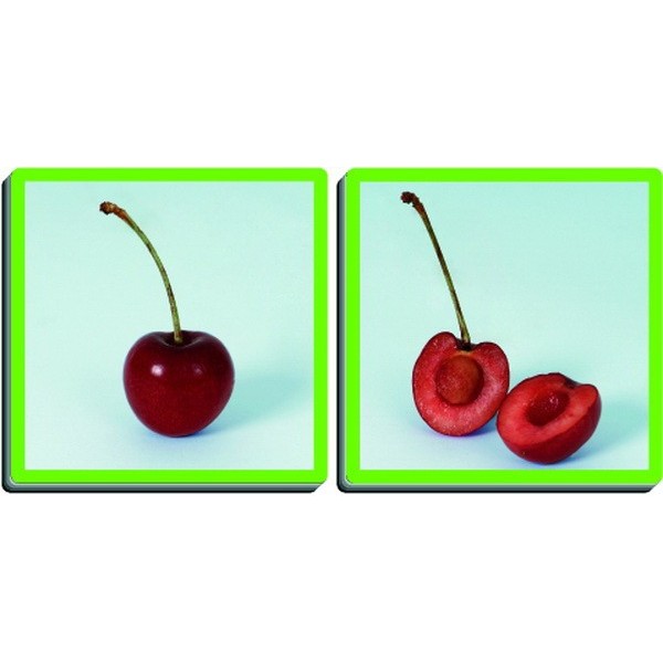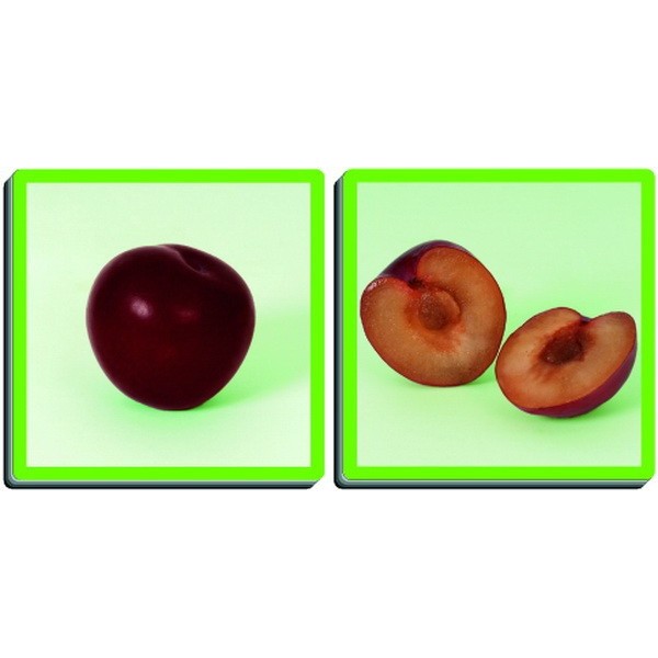 12 uzavierateľných túb s vôňou 12 druhov ovocia + 24 fotografii týchto dvanástich druhov ovocia (vcelku a rozkrájaného).
