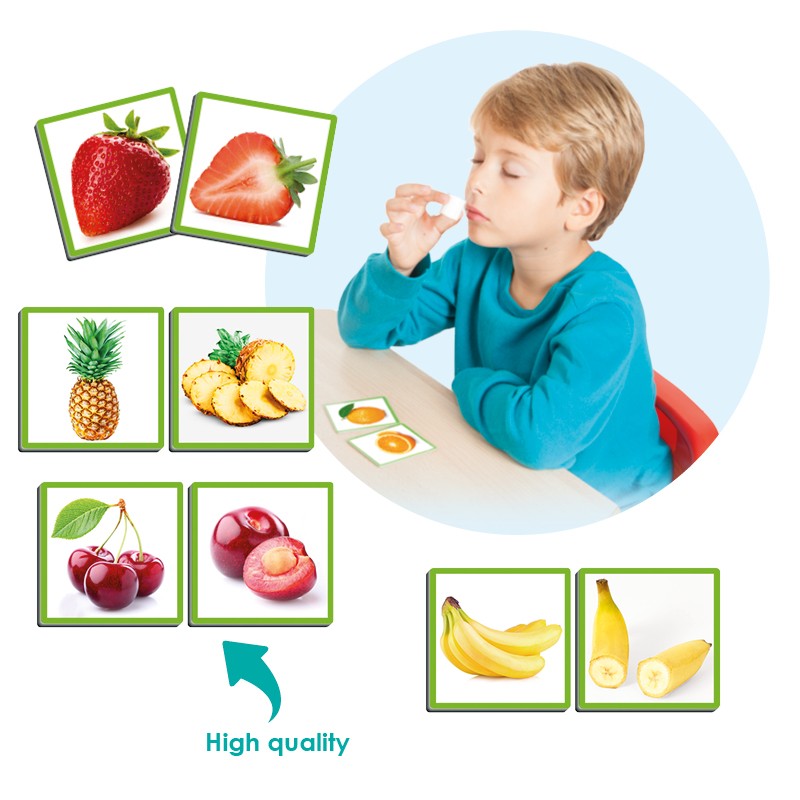 Hra určená na rozvoj zmyslov, konkrétne čuchu, na základe rozlišovania vône rôznych druhov ovocia. Zaradenie reálnych fotografii umožňuje vybudovať zrakovo-čuchové spojenie medzi ovocím a jeho vôňou, čím sa rozširujú znalosti o ovocí. Na bočných kartičiek je päťfarebný pás, slúžiaci ako samokontrolný opravný systém.